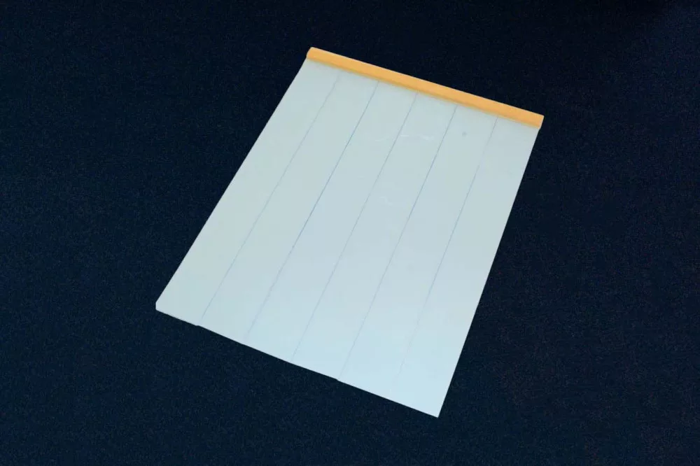 100 × 1,5 mm – es PVC szalagból készül, melyek natúr fenyőlécre vannak szerelve (két léc közé vannak befogatva az egymás mellé helyezett PVC szalagok). A fenyőléc a kutyaházra való felszereléshez elő van fúrva, a csomagban a kutyaajtó mellett megtalálható a felfogatáshoz szükséges csavarok is.