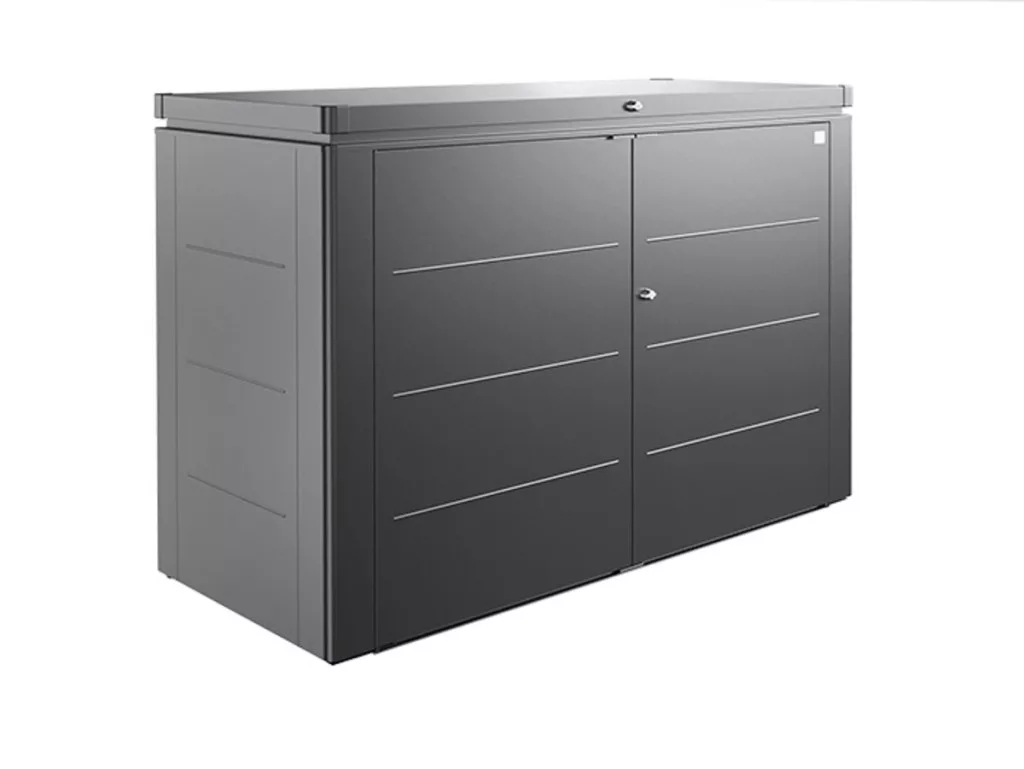 A masszív acélszerkezet és az időjárásálló bevonat biztosítja a hosszú élettartamot, míg a gázrugós tető és a kétszárnyú ajtó egyszerű és kényelmes használatot garantál. A Biohort termékekre jellemző prémium minőség és precíz kivitelezés hosszú távon megbízható tárolási megoldást kínál minden kerttulajdonos számára.