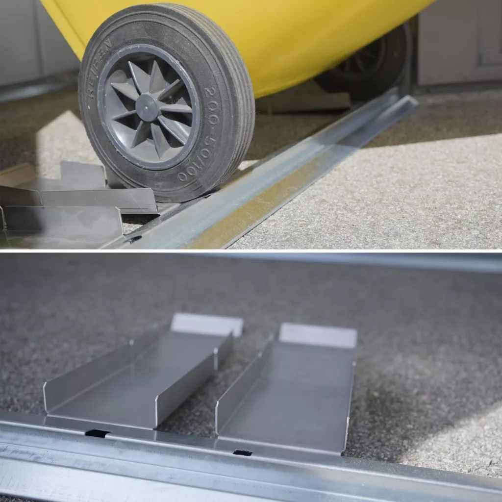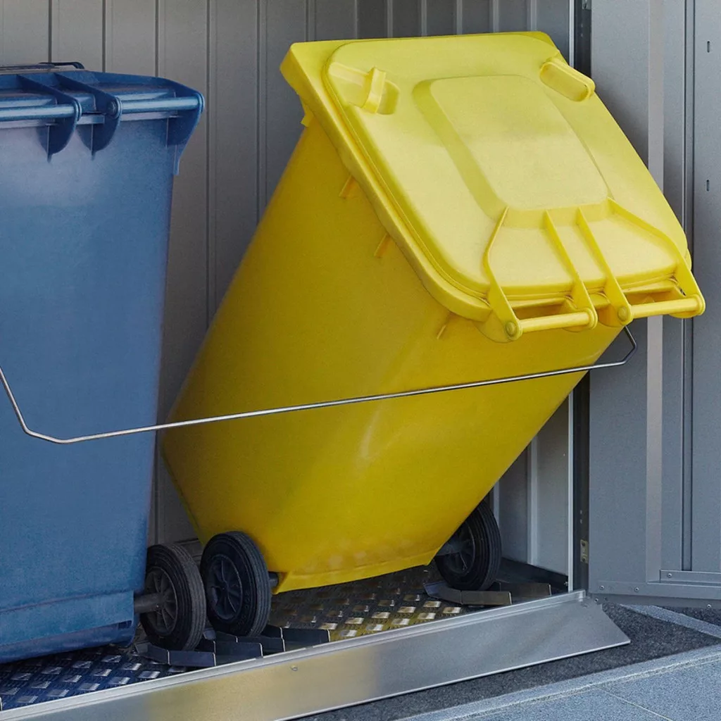 A tároló 2 darab 120 vagy 240 literes szemeteskuka befogadására alkalmas, így ideális megoldás szelektív hulladékgyűjtéshez is. A praktikus tartókar segítségével a kukák kibillenthetők, ami megkönnyíti a hulladék bedobását és a mindennapi használatot.