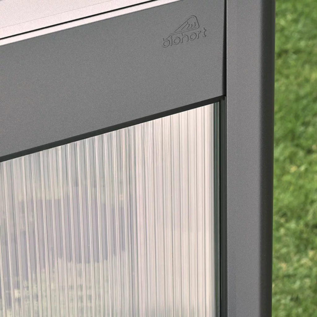 A Biohort termékek egyik legnagyobb előnye a tűzihorganyzott és poliamid bevonatú acélszerkezet, amely kiváló ellenállást biztosít az időjárási hatásokkal szemben. A prémium anyaghasználat és az osztrák gyártási minőség akár 20 év átrozsdásodás elleni garanciát is biztosít a termékekre.