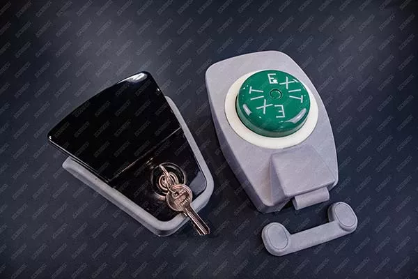 - Biztonság: Belső vészkioldó gomb az EN 179 szabvány szerint