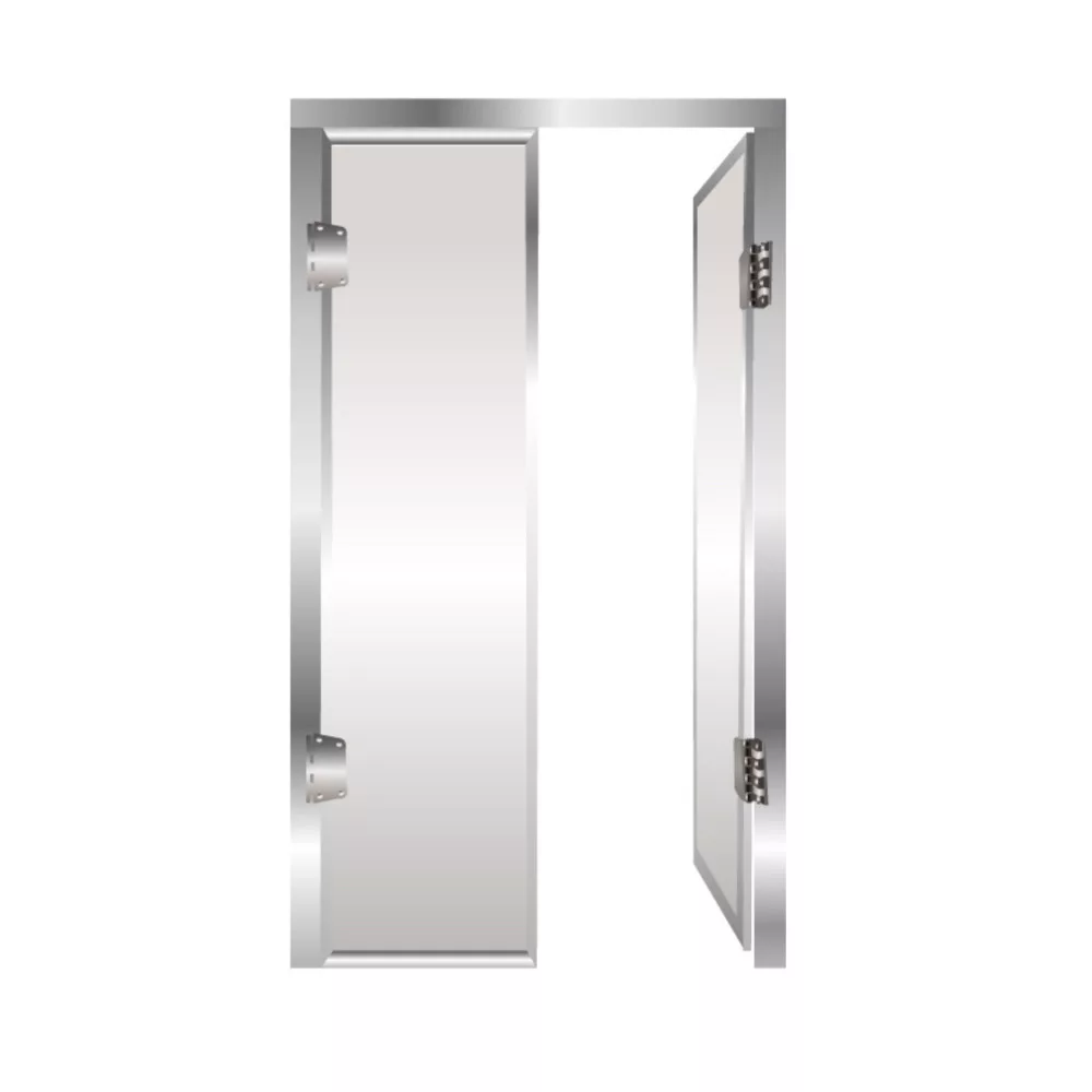 Az ajtólap két oldalt fehér színű stadurlapból áll, szélein alumínium keretprofillal, mely lehetővé teszi az oldalsó gumitömítés elhelyezését a megfelelő záródás érdekében. A zsanérok lehetővé teszik az ajtó mindkét irányból történő nyitását, és 90º -ban történő kitámasztását, ezzel könnyítve az átjárhatóságot. A műanyag borítású acél rugós zsanérok alkalmasak élelmiszeripari használatra is. Az ajtó az áthaladás után visszazáródik mindenféle kézmozdulat nélkül.