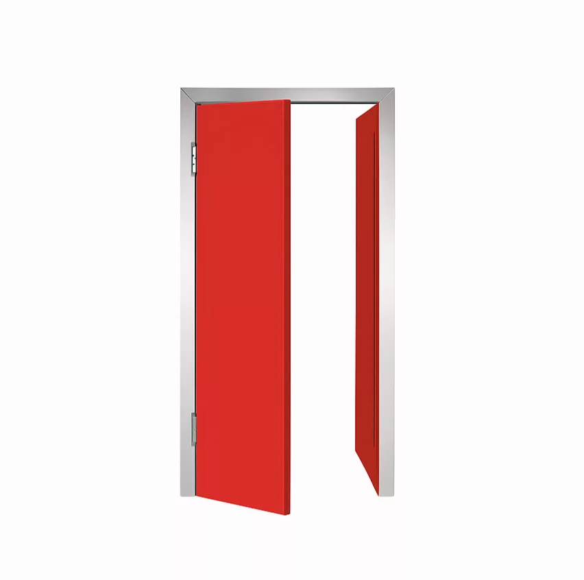 Az ajtólap két oldalt fehér színű stadurlapból áll, szélein alumínium keretprofillal, mely lehetővé teszi az oldalsó gumitömítés elhelyezését a megfelelő záródás érdekében. A zsanérok lehetővé teszik az ajtó mindkét irányból történő nyitását, és 90º -ban történő kitámasztását, ezzel könnyítve az átjárhatóságot. A műanyag borítású acél rugós zsanérok alkalmasak élelmiszeripari használatra is. Az ajtó az áthaladás után visszazáródik mindenféle kézmozdulat nélkül.