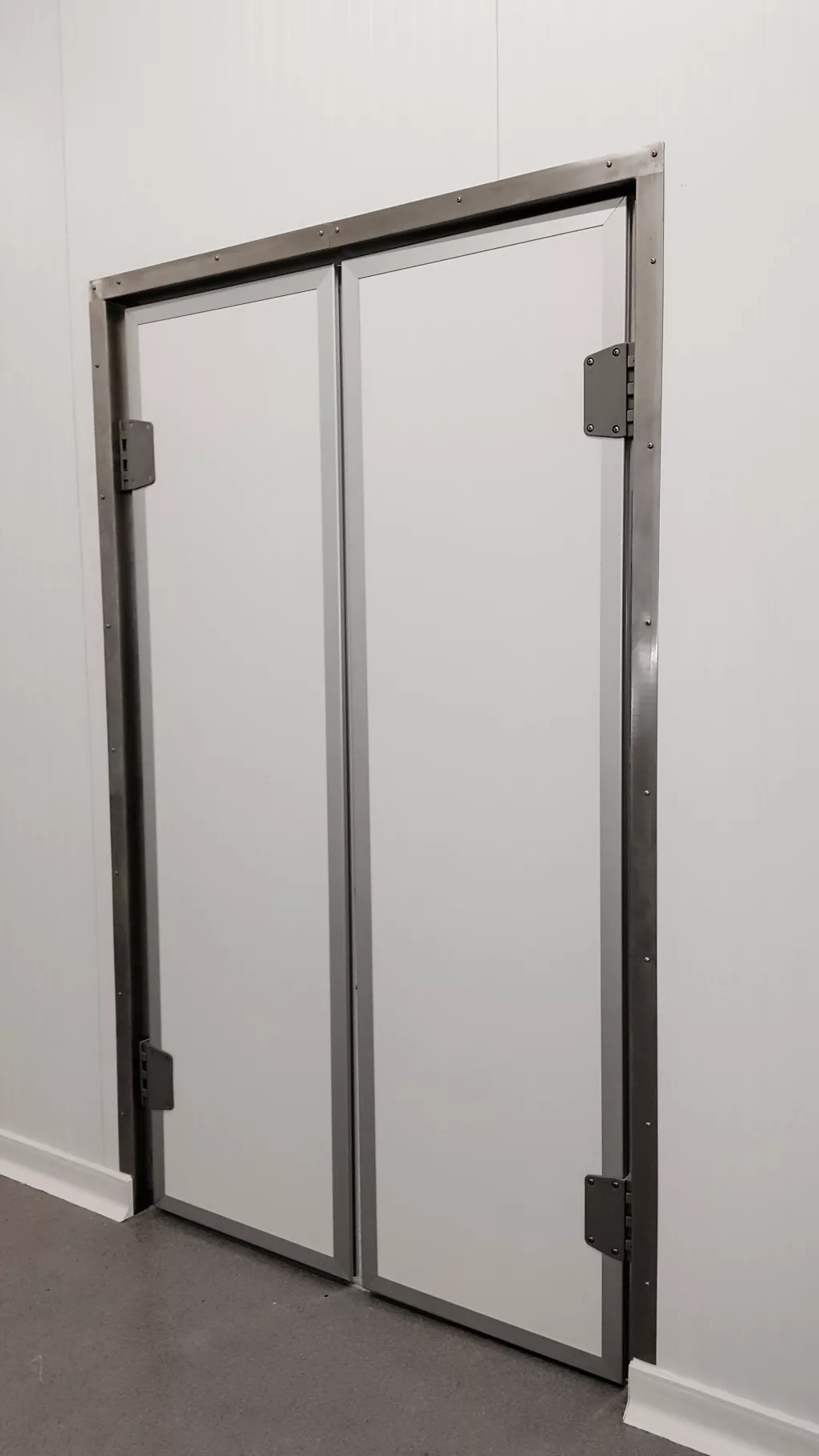 Az ajtólap két oldalt fehér színű stadurlapból áll, szélein alumínium keretprofillal, mely lehetővé teszi az oldalsó gumitömítés elhelyezését a megfelelő záródás érdekében. A zsanérok lehetővé teszik az ajtó mindkét irányból történő nyitását, és 90º -ban történő kitámasztását, ezzel könnyítve az átjárhatóságot. A műanyag borítású acél rugós zsanérok alkalmasak élelmiszeripari használatra is. Az ajtó az áthaladás után visszazáródik mindenféle kézmozdulat nélkül.