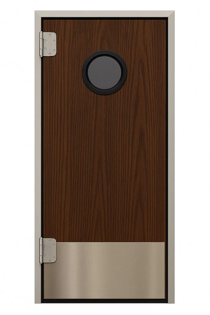 Az alap felszereltség mellett, lehetőség van az ajtólap rugdosó lemezzel való bővítésére, mely megóvja az ajtót az áthaladáskor bekövetkezhető sérülésektől, így akár lábbal vagy tároló kocsik áttolásával is lehetséges a nyítás. Rugdosólemezeink szálcsiszolt rozsdamentes lemezből készülnek.