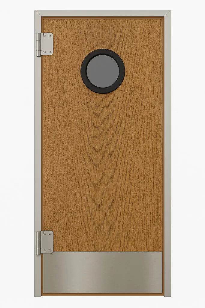 Az alap felszereltség mellett, lehetőség van az ajtólap rugdosó lemezzel való bővítésére, mely megóvja az ajtót az áthaladáskor bekövetkezhető sérülésektől, így akár lábbal vagy tároló kocsik áttolásával is lehetséges a nyítás. Rugdosólemezeink szálcsiszolt rozsdamentes lemezből készülnek.