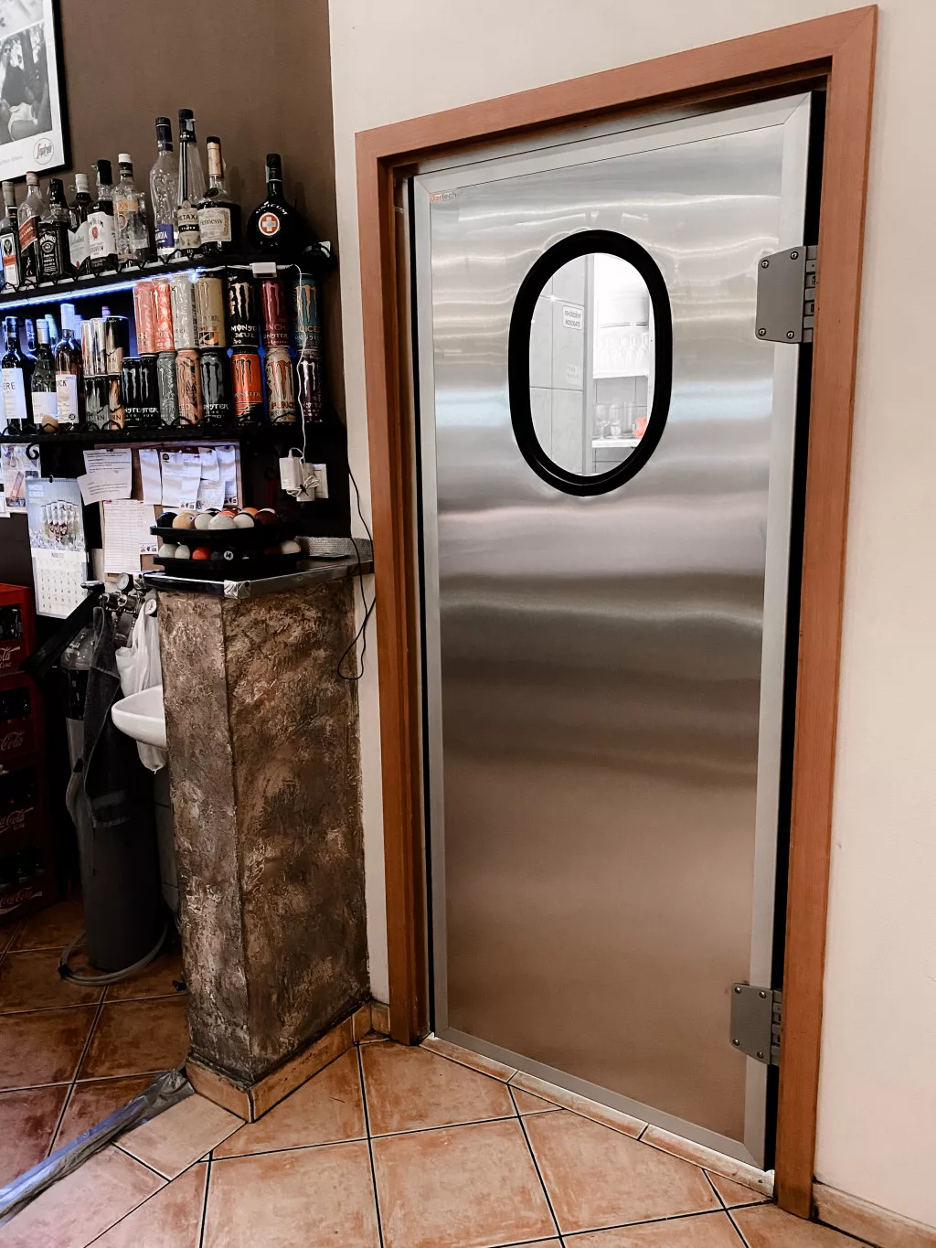 Az ajtólap szerkezete kiváló minőségű stadurlap, amely két oldalt szálcsiszolt rozsdamentes acéllemezzel van ellátva. Ez az anyag rendkívül ellenálló a fizikai behatásokkal, nedvességgel és vegyszerekkel szemben, így hosszú távú, higiénikus megoldást kínál. Az ajtólap szélei alumínium keretprofillal erősítettek, amely lehetővé teszi gumi szigetelés alkalmazását a precíz záródás érdekében.