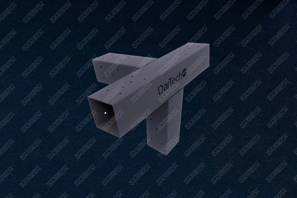 Az elemek 2 mm vastagságú acéllemezből készülnek, amelyet fekete porfestett bevonattal láttak el a maximális tartósság és korrózióvédelem érdekében. A csatlakozók belső mérete 94 × 94 mm, így ideális 100 × 100 mm-es (10 × 10 cm-es) gerendákhoz, figyelembe véve a gyalulás utáni méretcsökkenést.