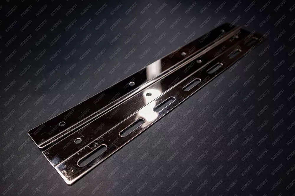 A saválló lemezpár 300 mm a PVC hőfüggönyök egyik legmebízhatóbb rögzítőeleme, amely kiválóan alkalmazható vegyszerállóságot és higiénikus környezetet igénylő létesítményekben. Anyaga rendkívül ellenálló a korrózióval, savakkal és különböző vegyszerekkel szemben, így kifejezetten ajánlott élelmiszeripari, gyógyszeripari és vegyipari alkalmazásra. A lemezpár biztosítja a PVC szalagok stabil rögzítését a kampósorhoz, megakadályozva azok elmozdulását vagy idő előtti leválását. Minden 300 mm széles PVC szalaggal kompatibilis, és popszegeccsel könnyen rögzíthető. Ideális új rendszerek telepítéséhez és meglévő rendszerek javításához.